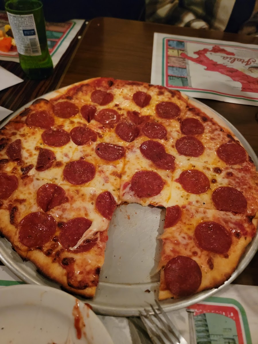 Good pizza. 70's decor was nice. Old school. We had an enjoyable dinner
